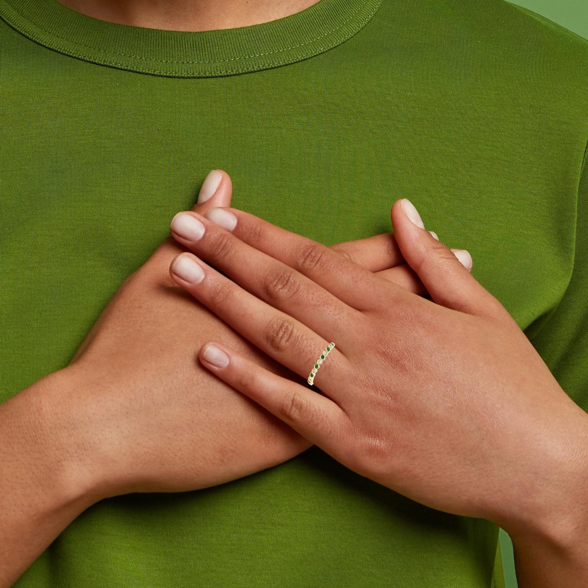 Indulge in classic elegance with this exquisite gold ring. Showcasing meticulously set, round cabochon-cut emeralds, this bracelet embodies timeless sophistication. The seamless design highlights the rich green hues of the emeralds, creating a luxurious and versatile piece suitable for any occasion.