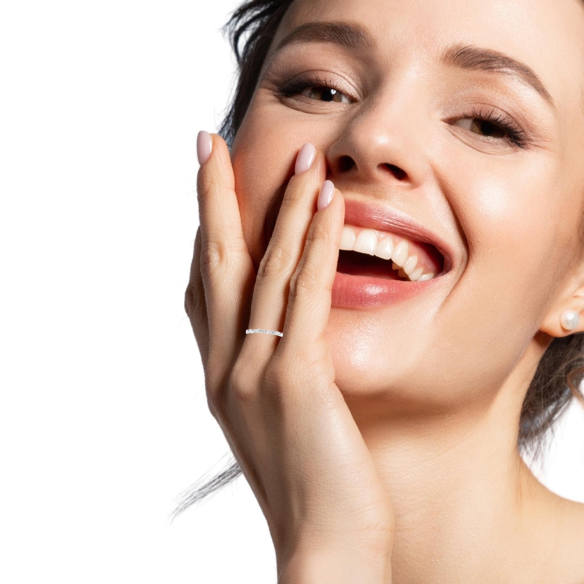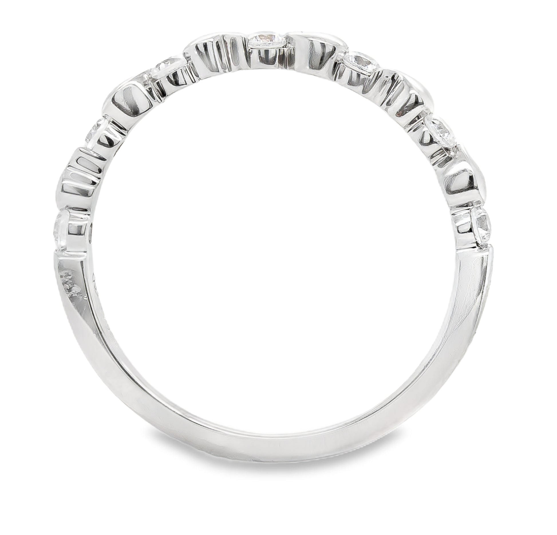 Exquisitely crafted in luminous white gold, this elegant band showcases a series of brilliant round cut diamonds. The design seamlessly blends modern sophistication with classic charm, perfect for adding a touch of refined sparkle to any ensemble. A testament to timeless beauty.